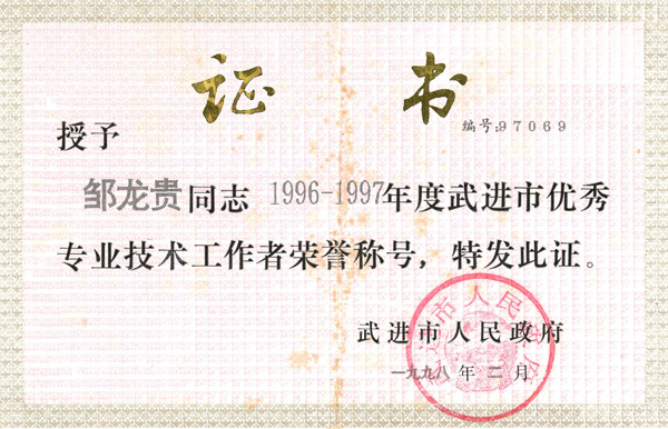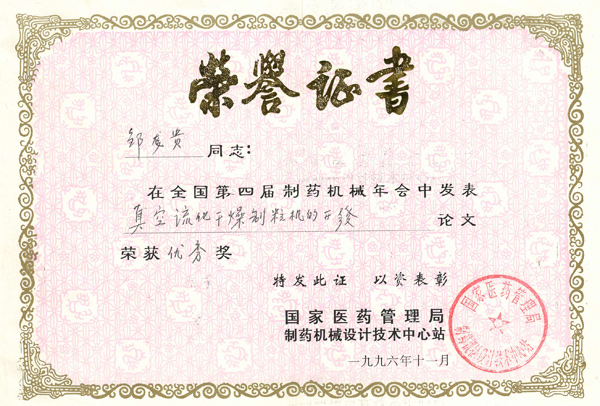 獲獎證書